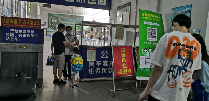 是七月上旬,位于紅旗廣場(chǎng)的湘運(yùn)中心汽車站似乎還沒(méi)有恢復(fù)元?dú),即使周末,乘客也是寥寥無(wú)幾,唯有候車室的大屏幕播放著疫情防控的宣傳。
